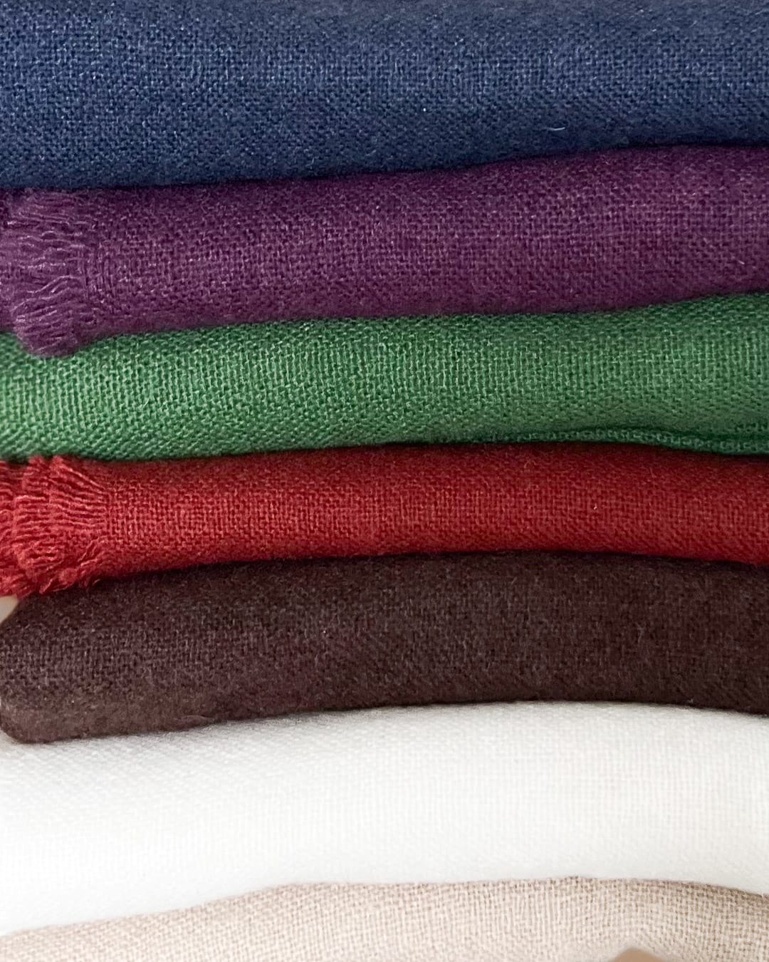 Våre skjerf er laget i kashmir – et tekstil som både varmer og puster, uten å klø. Det føles både luksuriøst, mykt og lett.