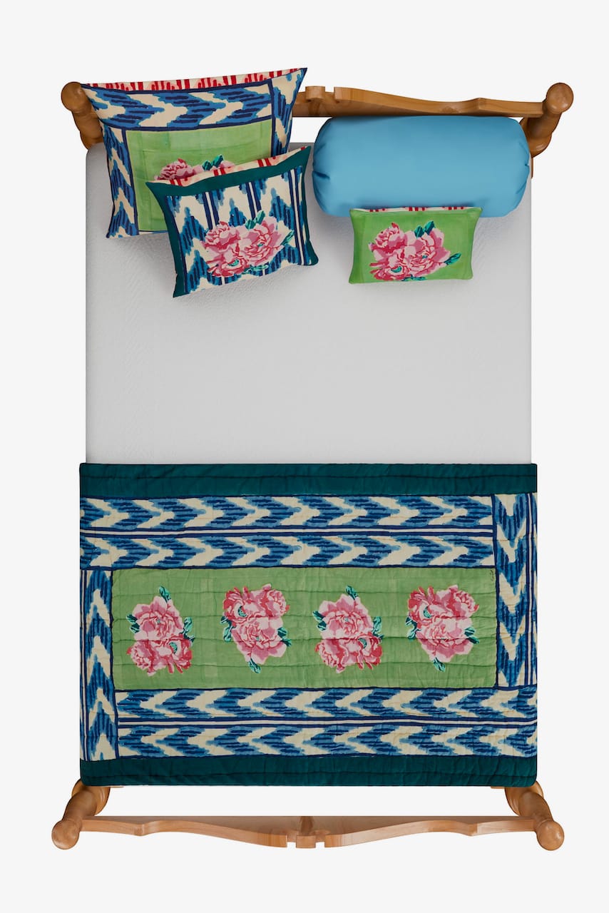 Putetrekk 45×45 i bomull med håndtrykket mint green-mønster.