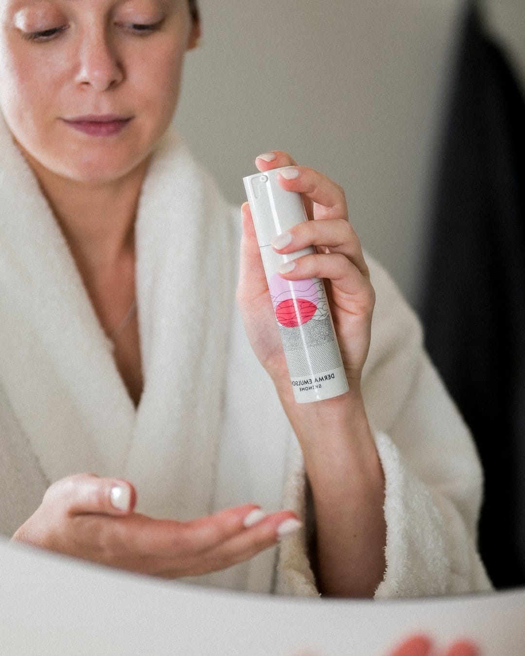 Påfør 1–3 pump med krem i hånden, eller den mengden som føles riktig for deg og huden din, og massér inn i ansikt og på hals. Derma Emulsion kan brukes både som dag- og nattkrem, og fungerer også godt rundt øyeområdet.